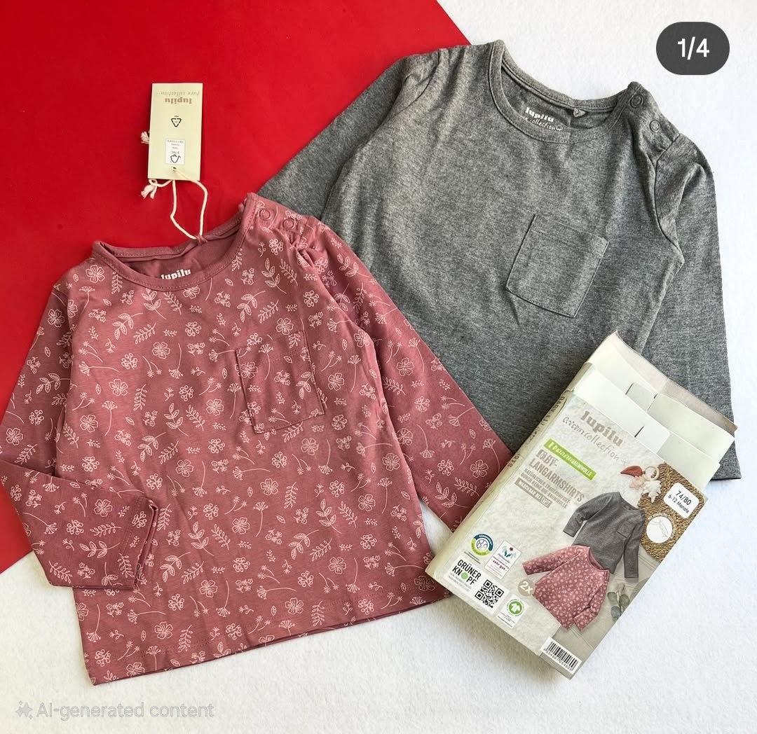 پک دوتایی بلوز نخ پنبه ضد حساسیت دخترانه تیشرت آستین بلند نوزادی لوپیلو