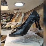 کفش پاشنه بلند زنانه و دخترانه کفش پاشنه دار مشکی و کرم کفش پاشنه ۷سانت