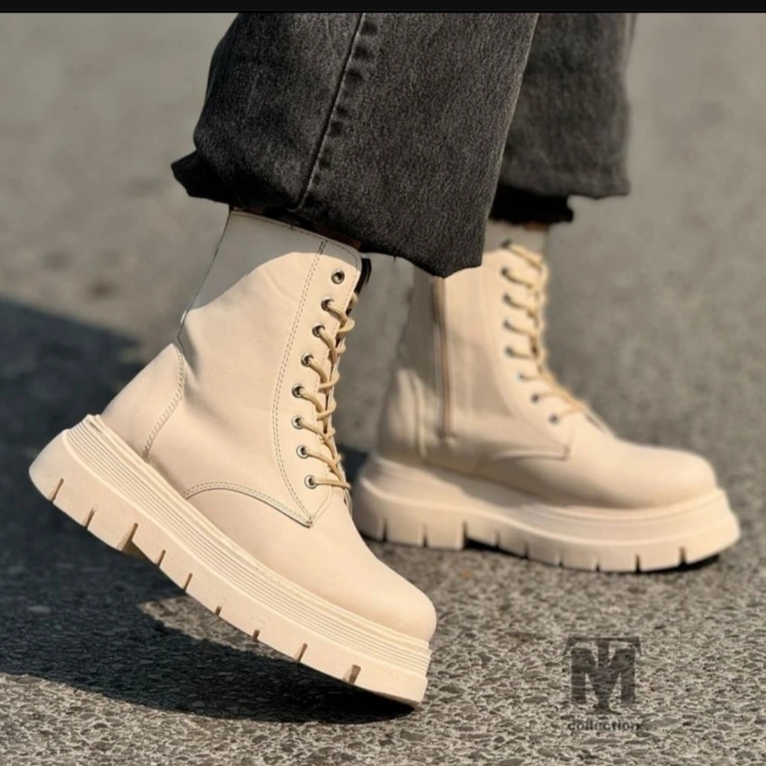 بوت سربازی بندی بغل زیپ زنانه و دخترانه قهوه ای مشکی کرم