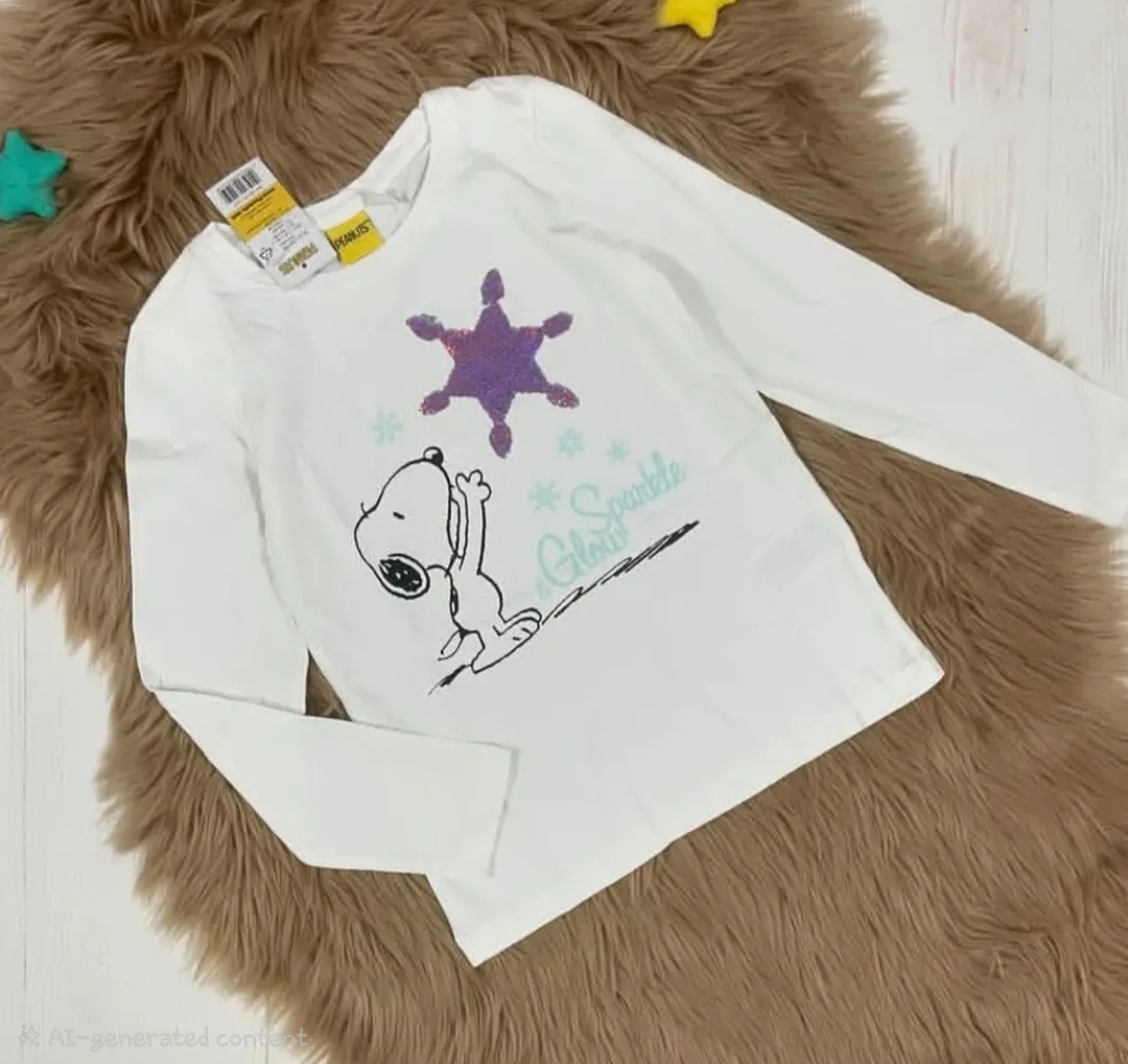 بلوز آستین بلند سفید نخ پنبه پولکی بچگانه دخترانه تیشرت آستین بلند پولک برگردان پیناتز