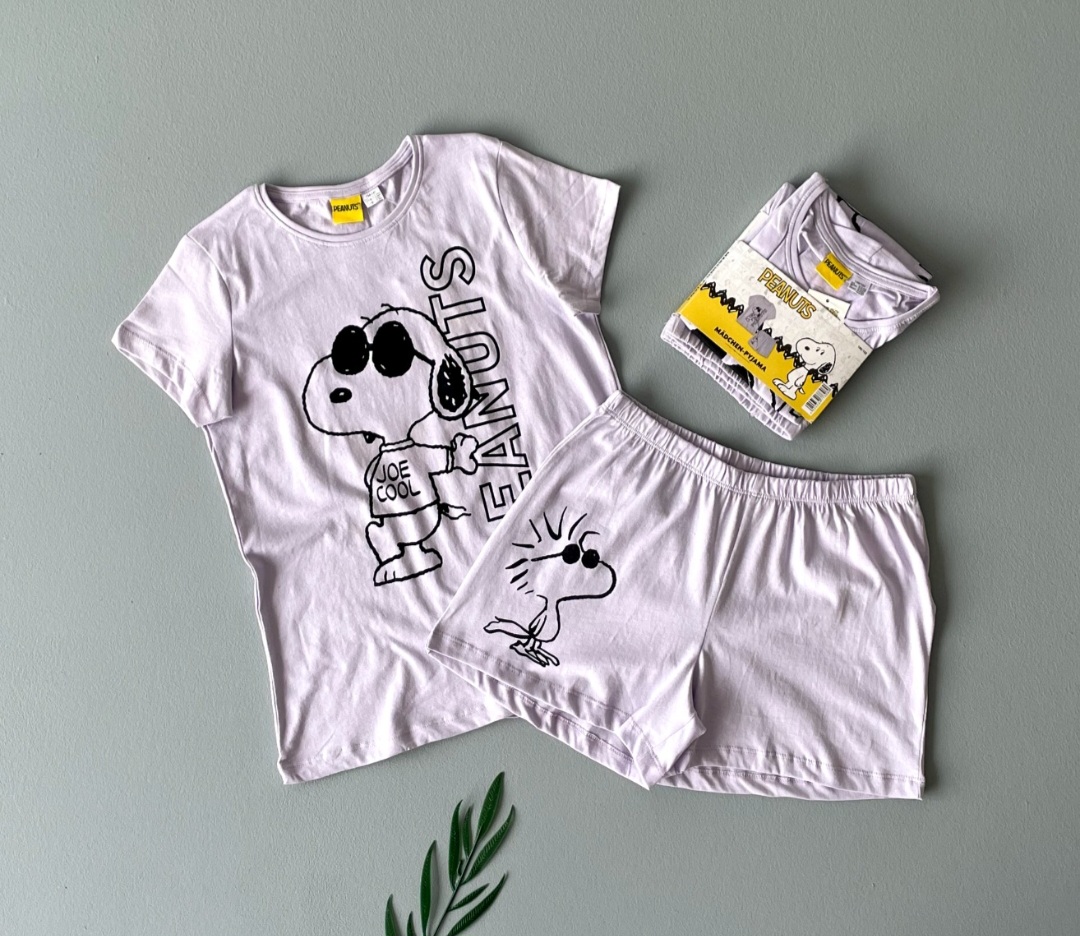 ست تیشرت و شلوارک دخترانه پیناتس یاسی بچگانه نخ پنبه