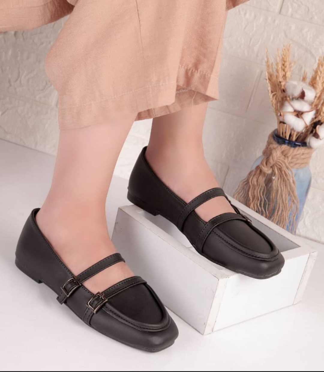 کالج عروسکی دخترانه و زنانه کفش راحتی طبی مشکی و کرم