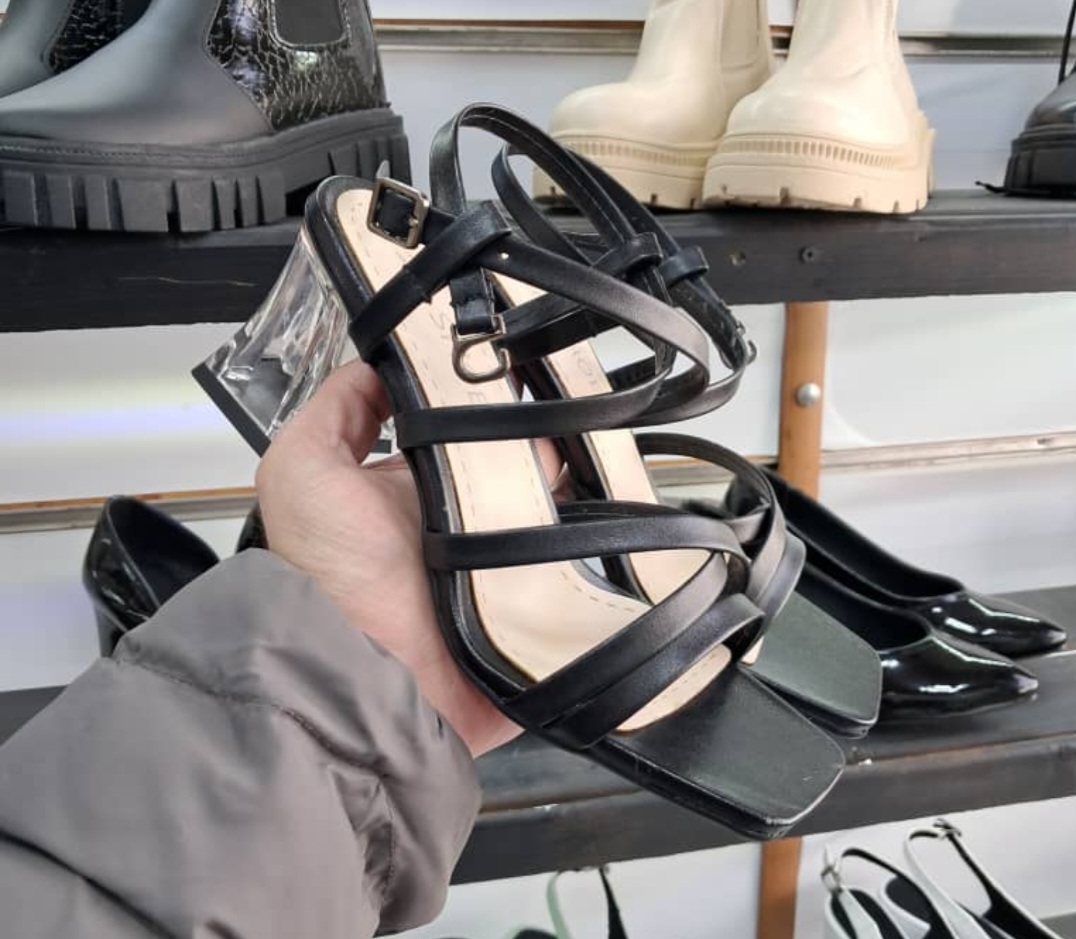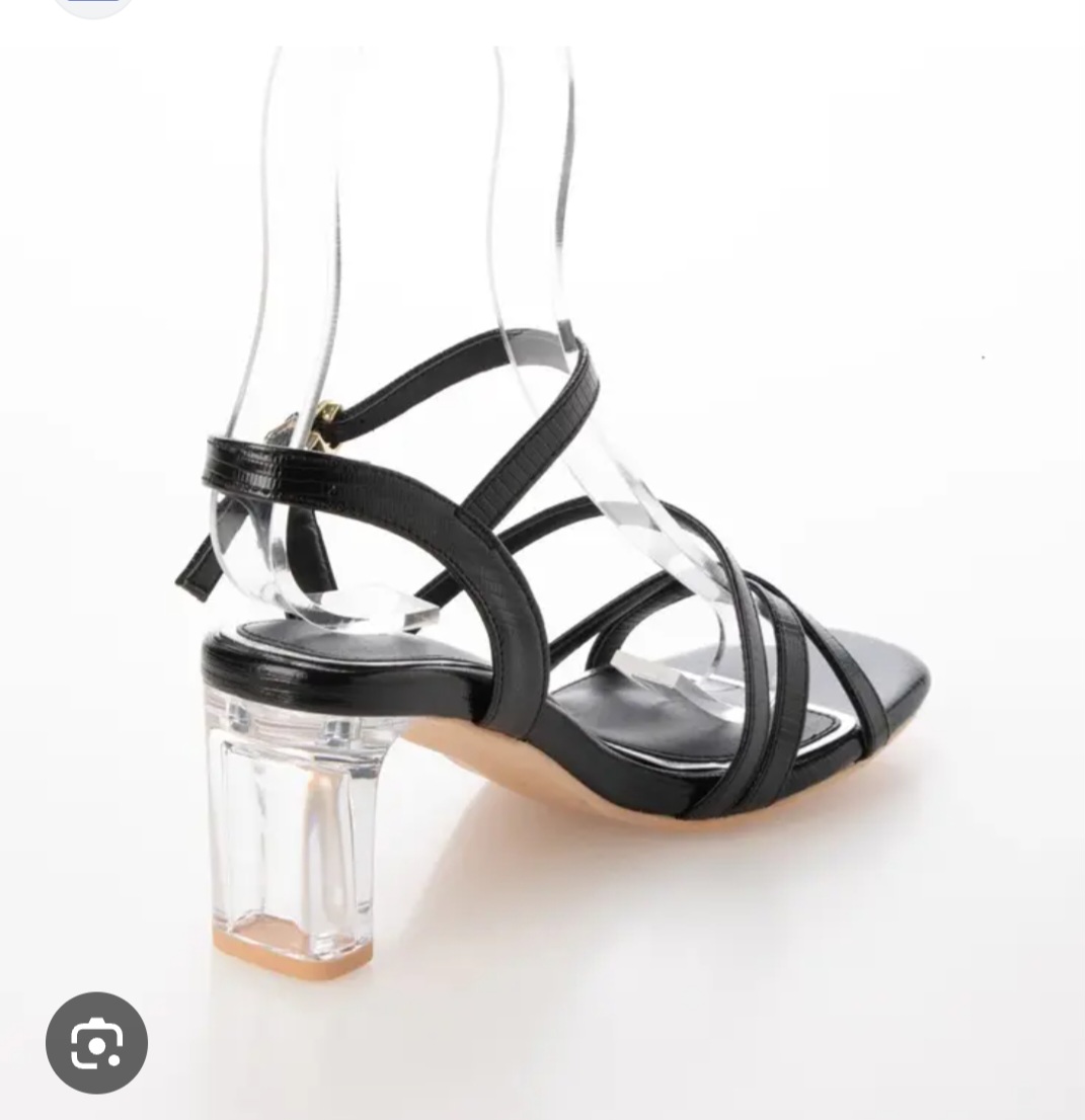 کفش پاشنه دار مجلسی دخترانه و زنانه صندل پاشنه طلقی شیشه ای رکابی جذاب مشکی و کرم
