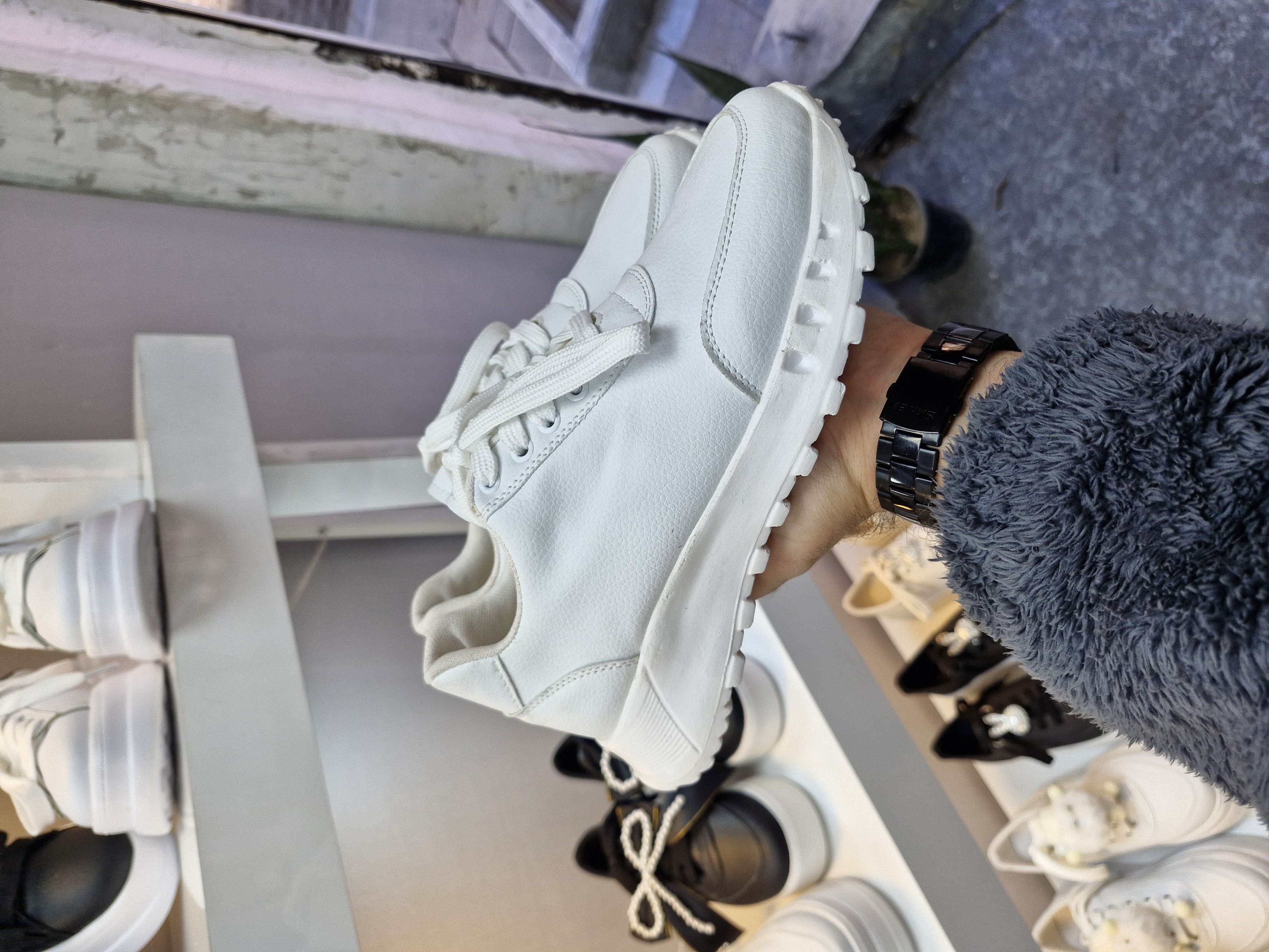 کتونی بندی طبی و راحت دخترانه و زنانه سفید ونس بندی لژدار
