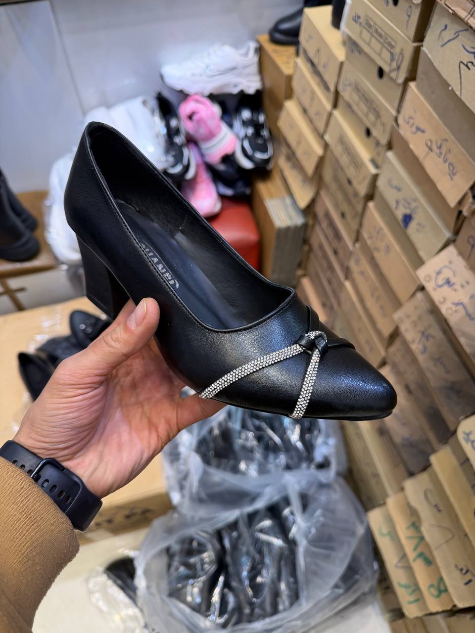 کفش مجلسی پاشنه بلند نگینی مدل اداری دخترانه و زنانه پاشنه ۵سانت
