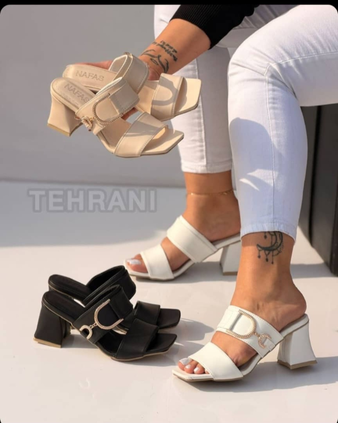 کفش پاشنه دار مدل دیور مشکی و کرم زنانه و دخترانه مجلسی و شیک پاشنه بلند پهن