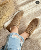 کتونی طبی گوچی بندی زنانه و دخترانه کتونی کرم طرحدار کتونی لژدار راحت طبی