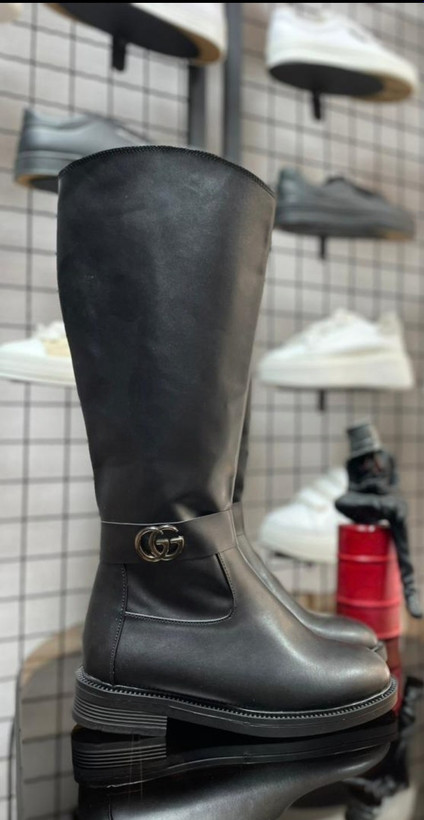 بوت بلند چرم ساده زنانه بوت ساق دار دخترانه ضد آب بغل زیپ زیپی بوت تا زانو
