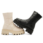 نیمبوت ترک نیم بوت ترک بوت ترک خارجی وارداتی بغل زیپ چرم ضد آب لژدار مشکی و کرم