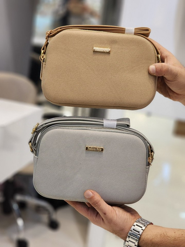 کیف دوشی کنفی زنانه دخترانه دو خونه سبک دارای بند بلند کرم سفید طوسی مشکی