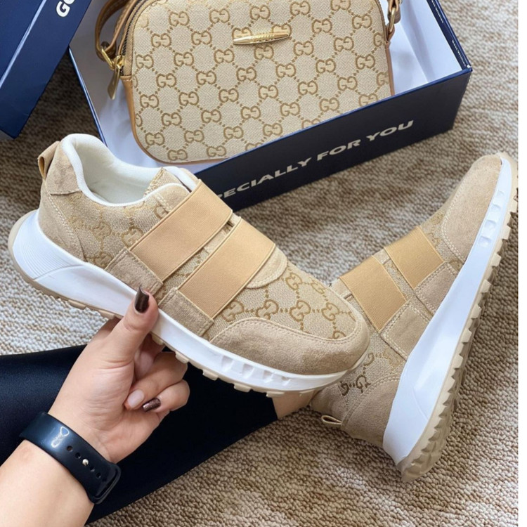 کتونی دوکش بدون بند گوچی دخترانه و زنانه کتونی بدون بند کشی لژدار طرحدار