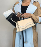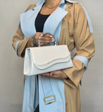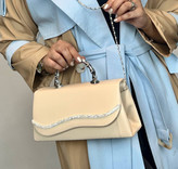 کیف مجلسی زنانه و دخترانه دستی و دوشی نگینی نگین دار با بند بلند رنگ سفید مشکی کرم