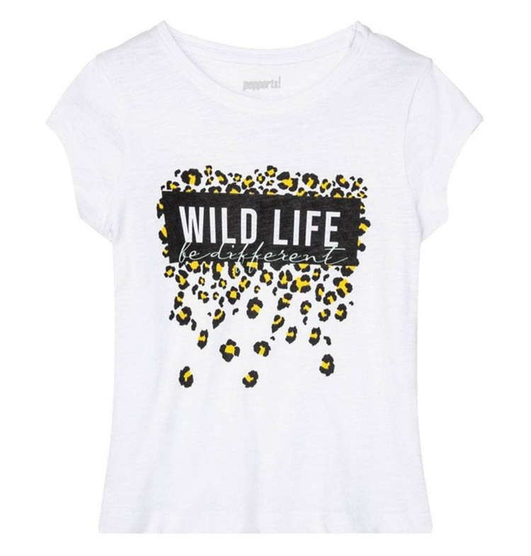 تیشرت دخترانه پپرتز لباس آستین کوتاه بچگانه تابستونی سفید نخی وارداتی خارجی