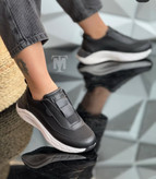 کتونی سه کش کتونی کشی بدون بند دخترانه و زنانه سفید و مشکی طبی و راحت