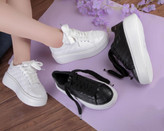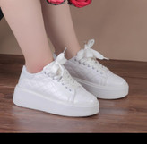 کتونی لژدار سفید شنلدوزی تمام سفید لژبلند دخترانه و زنانه مکویین ونس بندی لژدار