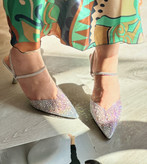 کفش پاشنه دار زنانه و دخترانه پاشنه بلند ۴سانت چهارسانت طلقی هفت رنگ نگینی