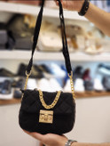 کیف دوشی جنس خارجی مخمل ترک وارداتی مشکی کرم بند زنجیری بند بلند چرم کیف پاسپورتی