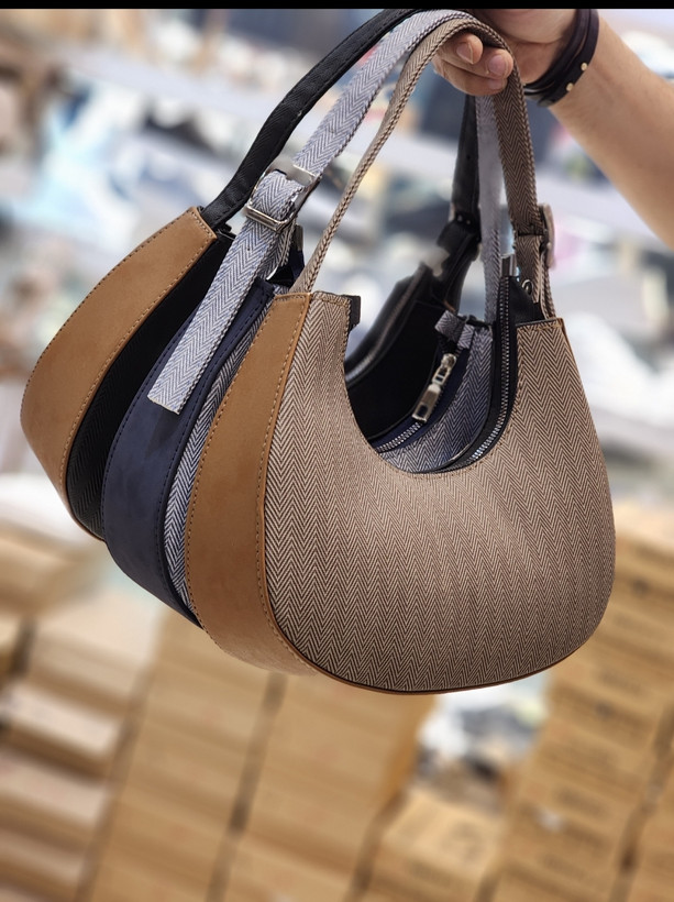 کیف گرد هلالی آبی و مشکی و قهوه ای و کرم دستی شیک و خاص دختزانه و زنانه