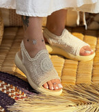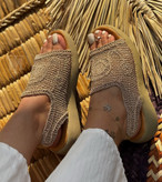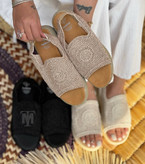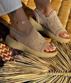 صندل گیپوری زنانه و دخترانه کفش تابستونی صندل توری بافتی مشکی و کرم و نسکافه ای صندل لژدار