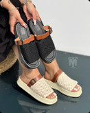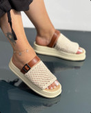 صندل گیپوری زنانه و دخترانه صندل لژدار حصیری بافتی کرم و مشکی
