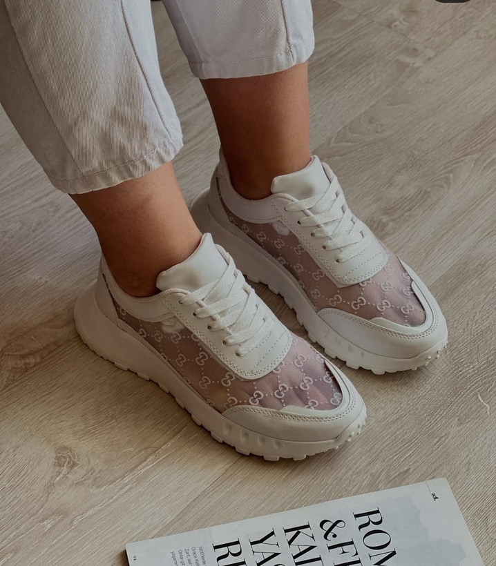 کتونی توری تابستونی دخترانه و زنانه رنگ سفید و مشکی طبی و راحت کتونی لژدار خنک