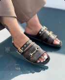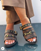 صندل تخت زنانه و دخترانه قهوه ای و مشکی صندل بدون لژ لویی ویتون صندل طبی راحتی