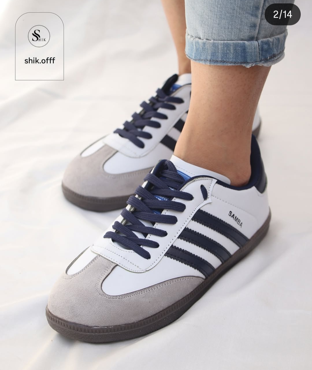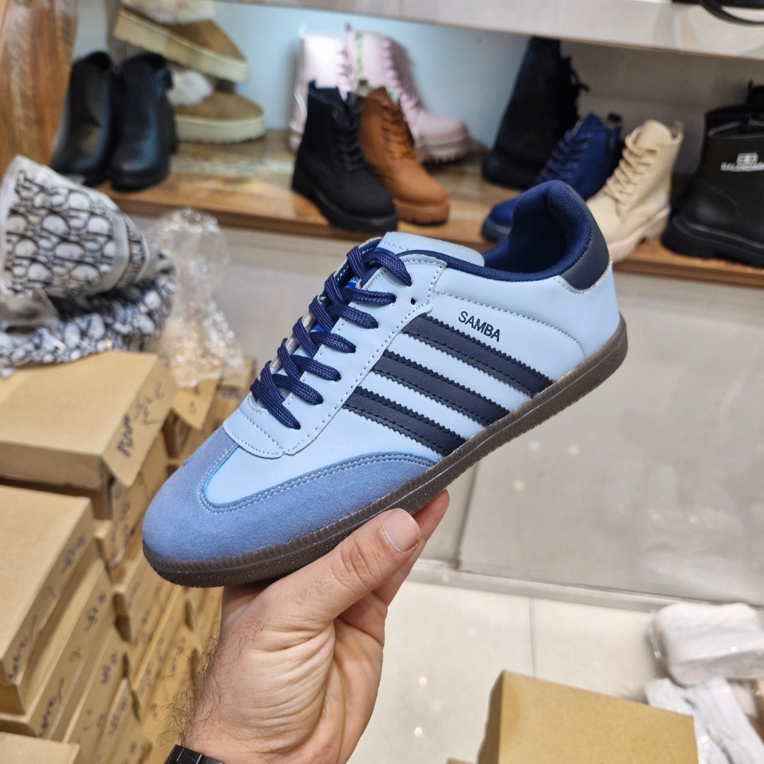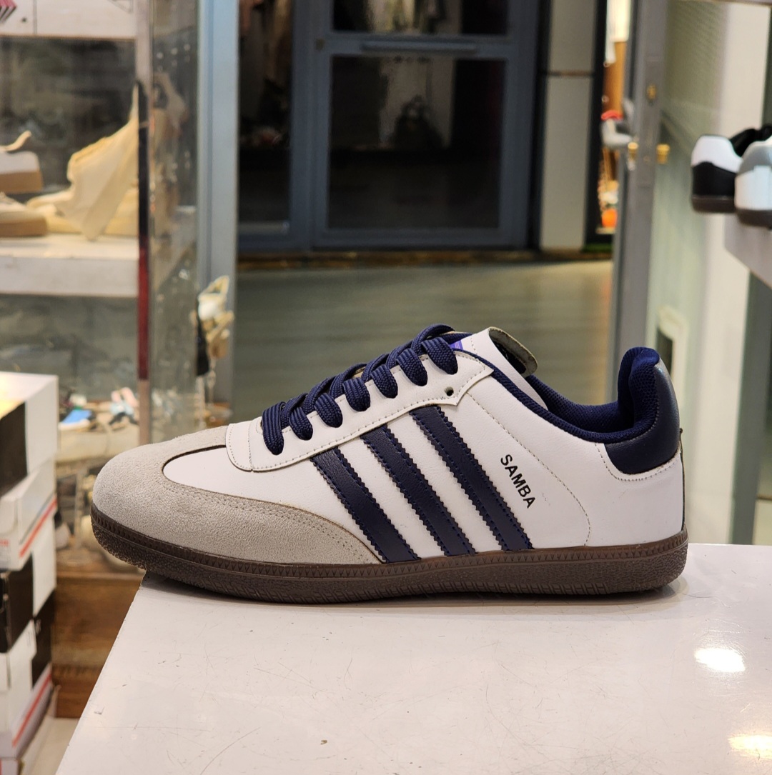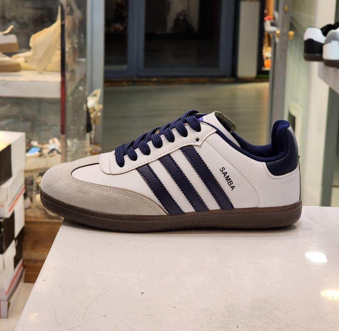 کتونی سامبا ونس بندی سه خط زنانه و دخترانه ی طبی و راحت مشکی سفید سورمه ای