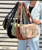 کیف دوشی چرم شسته سبک و نرم چند زیپ جادار مشکی کرم سبز