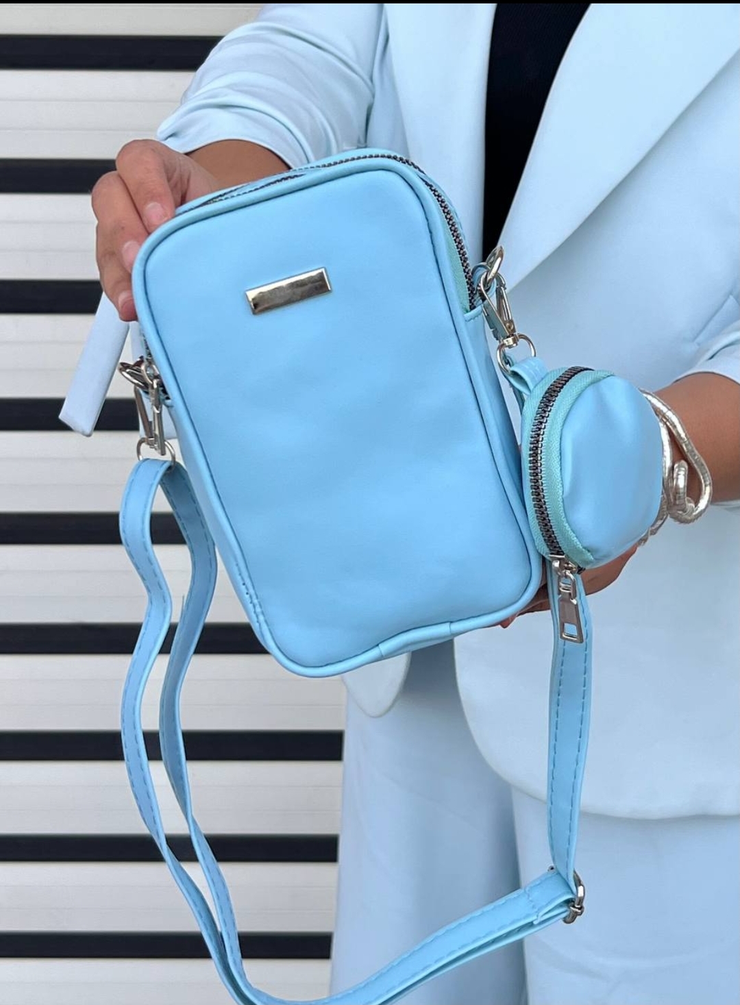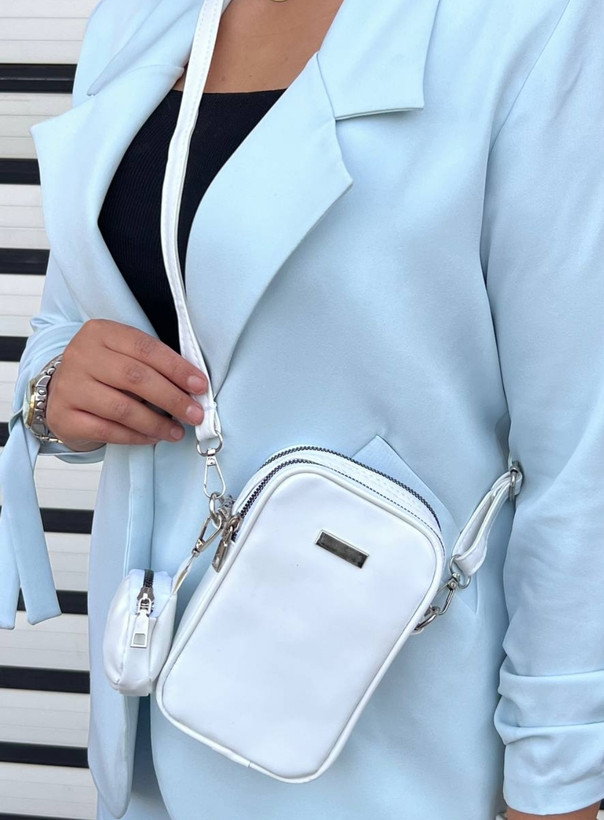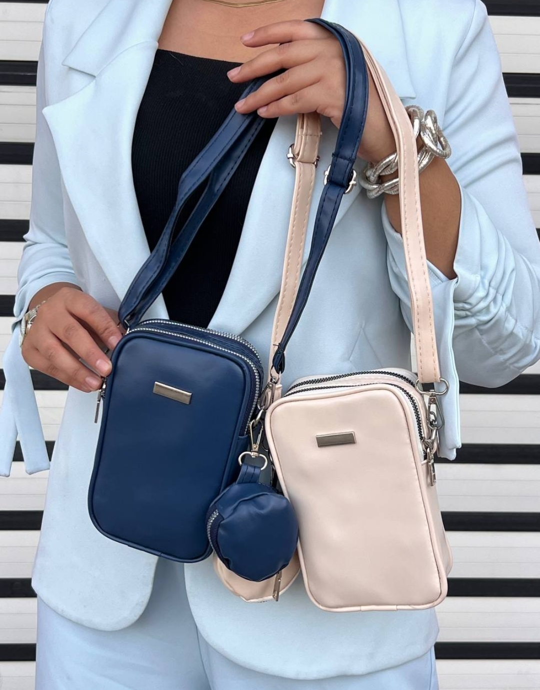 کیف دوشی دخترانه و زنانه با بند بلند دوشی مستطیلی جادار آبی سفید کرم