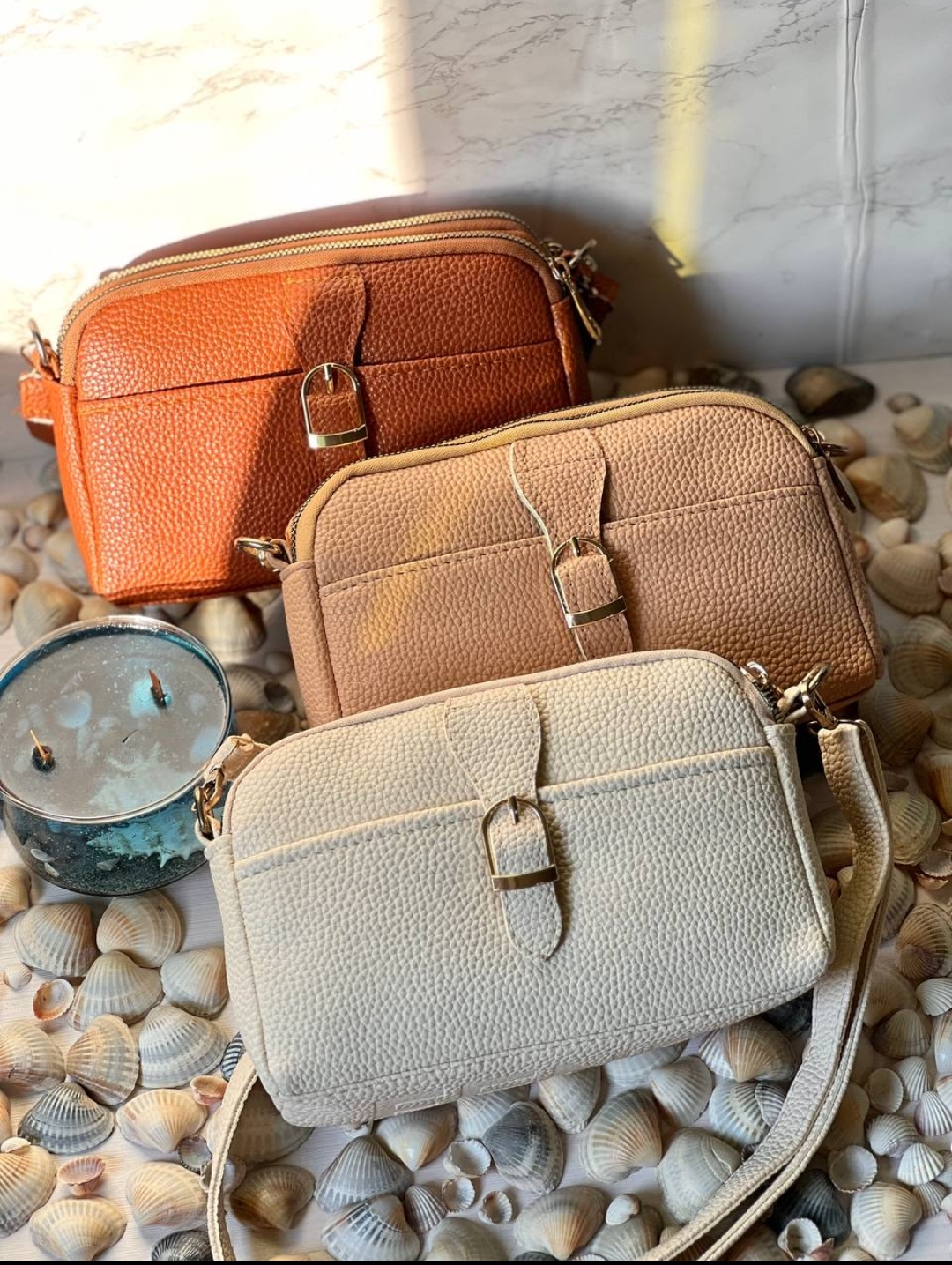 کیف دوشی زنانه و دخترانه با بند بلند مشکی طوسی کرم عسلی