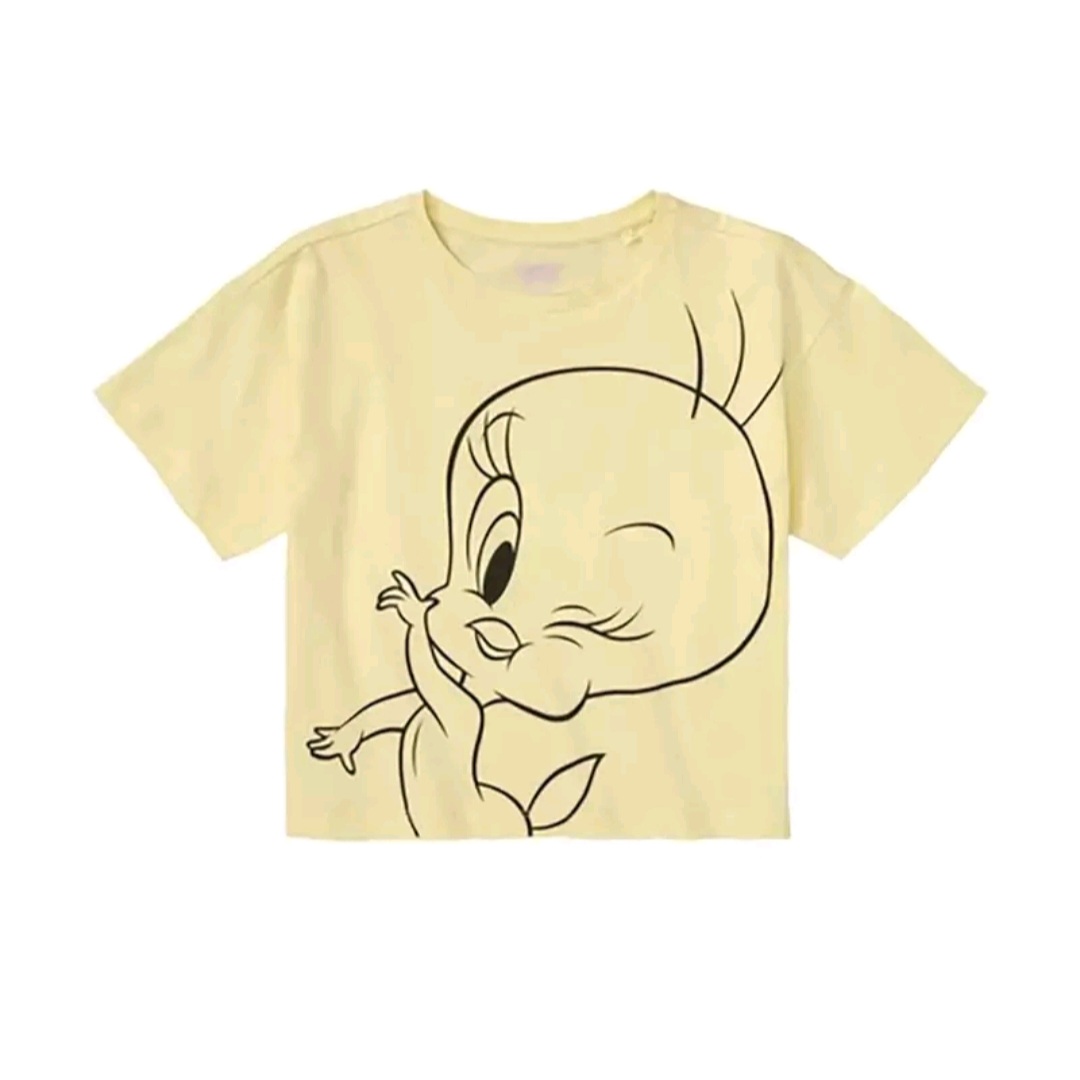 تیشرت کراپ دخترانه لونی تونز مدل توئیتی نخ بچگانه