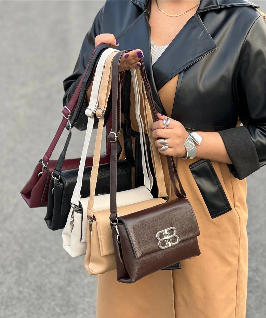 کیف دوشی مدل بالنسیاگا رویه چرم واکسخور با بند بلند دوشی