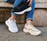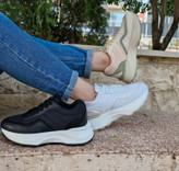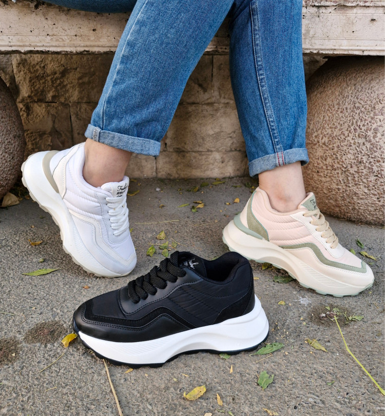 کتونی لژدار کتونی بندی راحتی طبی ضدآب دخترانه و زنانه کرم و مشکی و سفید